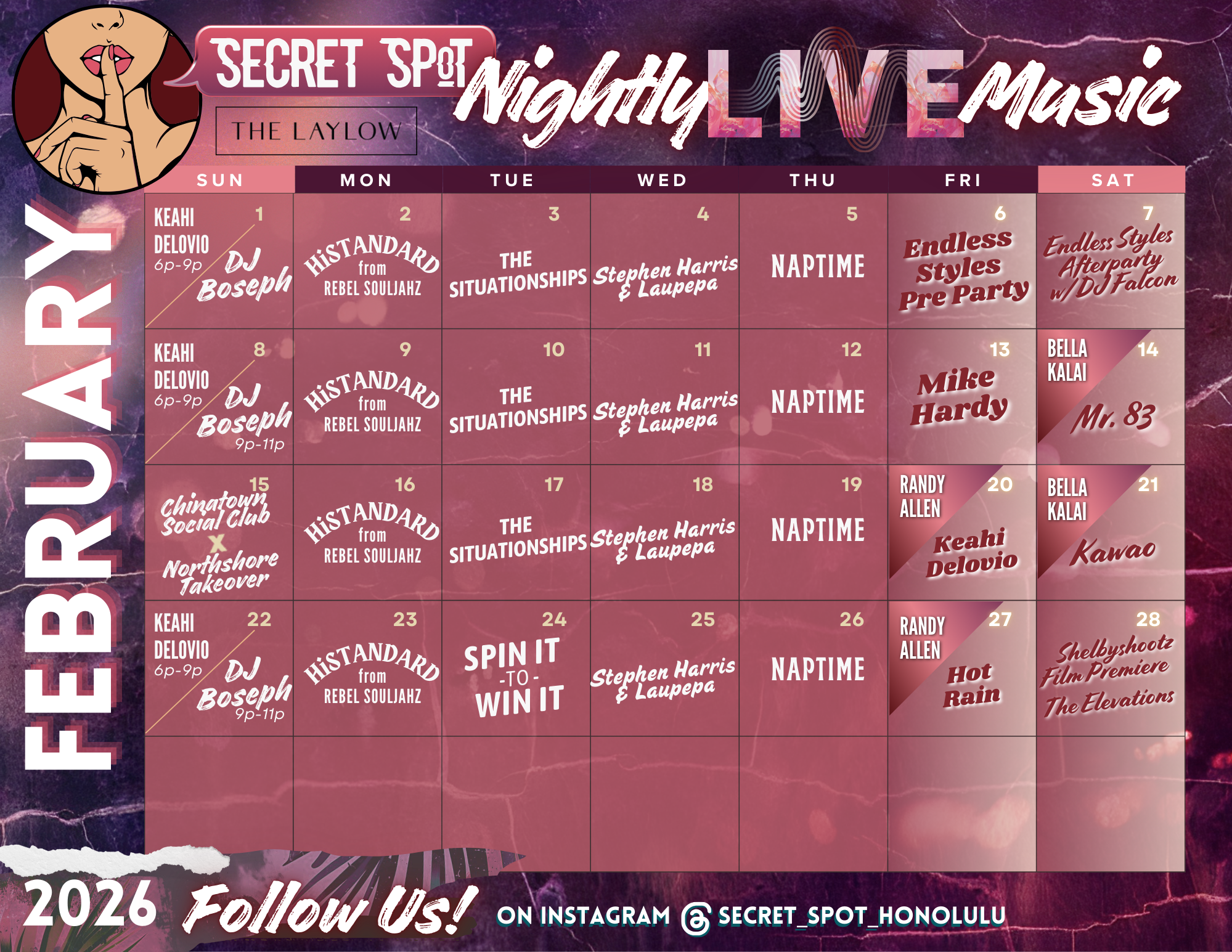 Secret Spot is Hawaii’s living heartbeat, breathing seven days a week with the rhythm of local musicians, artists, and creators. Secret Spot provides a radiant platform where every voice can rise, every craft can flourish, and community can celebrate the boundless imagination of the islands—together, we craft unforgettable moments and strengthen the pulse of aloha.